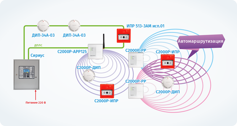 - Радиоретранслятор «С2000Р-РР» поддерживает подключение до 64 радиоканальных устройств и позволяет строить протяженные разветвлённые радиоканальные системы с резервными маршрутами передачи данных
